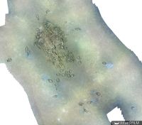 À l’extrémité sud-est de l'épave, la présence de quatre jas d’ancre paraît signaler une de ses limites. À l’opposé, au nord-ouest du tumulus, les vestiges de la cargaison marquent très nettement la fin du gisement. Sur les bords du tumulus, formé par les lingots d’étain, se dégagent l’affleurement ponctuel du bordé et des têtes de membrures.