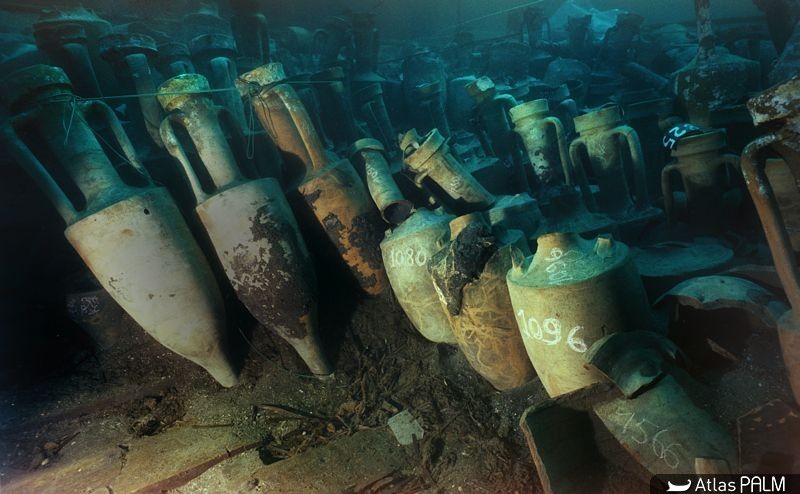 Le chargement principal du navire se composait d’environ 6000 amphores italiques républicaines, empilées sur au moins trois couches. L’origine de ces amphores à vin a été localisée dans la région de Terracine, au sud de Rome, en Italie. Cette zone viticole produisait un des meilleurs vins italiens de l’époque : le Cecube.